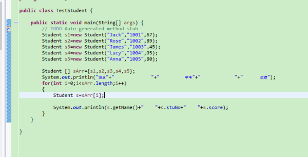 System.out.println(s.getName()+"\t"+s.stuNo+"\t"+s.score);