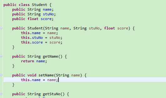 创建学生信息类Student,含学号(no)、姓名(name)、成绩(score)3个属性