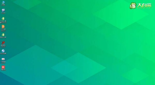 2进入大白菜主菜单后,通过“↑↓”键选择“【1】启动Win10 X64PE(2G以上内存)”后回车确认,成功进入大白菜pe界面。