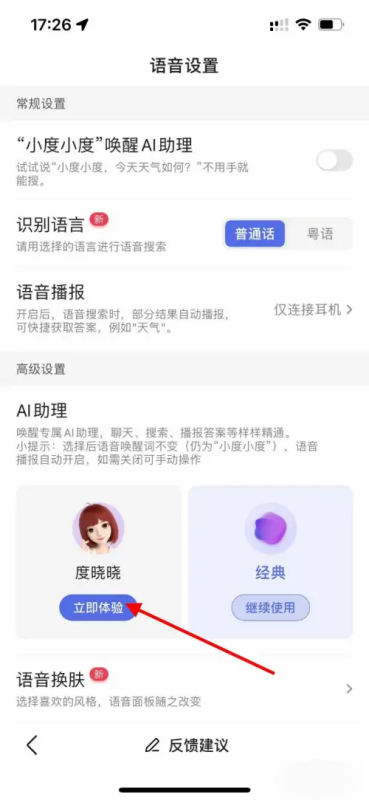 4、找到页面中的AI助理-度晓晓,点击【立即体验】完成开启。