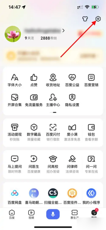 2、进入百度APP【我的】页面,点击右上角的设置图标。