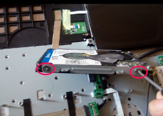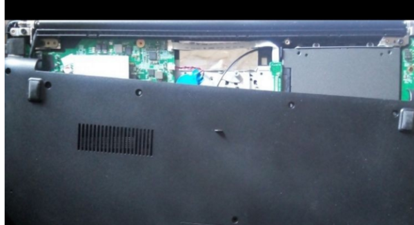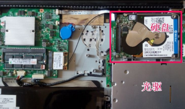 2. 打开笔记本的后盖板后,找到机械硬盘。