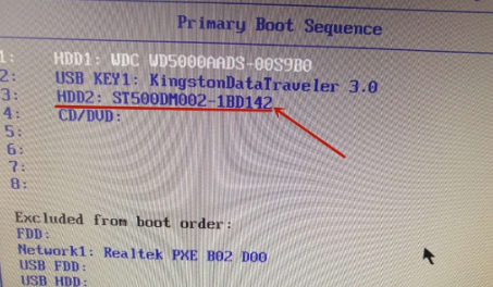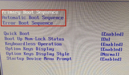 5、看到加装的SSD后,按ESC键返回到主界面,使用左右箭头选择startup启动设置,使用上下箭头选择Primary Boot Sequence,点击回车键进入。