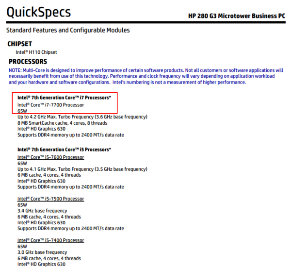 该主板采用的是H110芯片组,可以支持Intel第6、7代的处理器。最高支持第7代的i7-7700。下面是官网上的说明书截图。