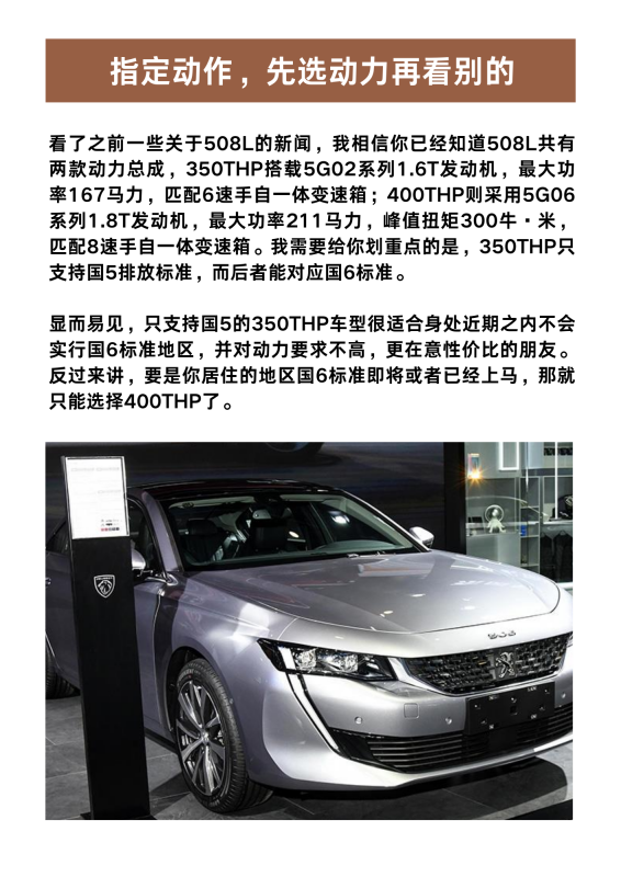 看了之前一些关于508L的新闻,我相信你已经知道508L共有两款动力总成,350THP搭载5G02系列1.6T发动机,最大功率167马力,匹配6速手自一体变速箱;400THP则采用5G06系列1.8T发动机,最大功率211马力,峰值扭矩300牛·米,匹配8速手自一体变速箱。我需要给你划重点的是,350THP只支持国5排放标准,而后者能对应国6标准。