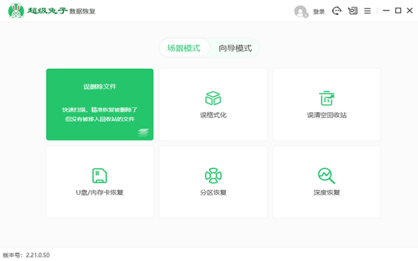 怎样恢复被删除的文件?如今,电脑已经是我们办公、生活和娱乐中必不可少的设备,更是存储着我们很多重要的文件。但是,有的时候一些使用者可能会不小心删除了自己还需要的重要文件,给生活或工作带来巨大的麻烦。这个时候不用着急,有一个超级简单的方法帮助您恢复您误删除的文件。 首先,我们可以查看电脑的回收站,只要不是永久删除的文件,都会保存在回收站里,右键还原文件就可以。 但如果是永久删除的文件呢?那靠普通使用者在电脑本身的操作就很难找回了,但是我们可以求助一些专业的数据恢复软件,具体操作步骤如下: 第二步:在“场景模式”中选择符合自己情况的恢复模式,即可快速扫描丢失文件。还可以点击下方的“向导模式”进行切如何找回电脑中已经删除的文件