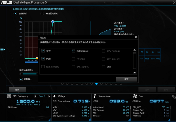 最多可选择三个测温点,风扇会依据温度来源中,最高的温度来调整转速。