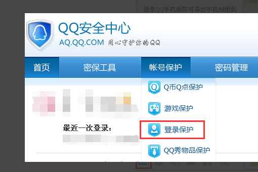 3、接着,在弹出窗口中,点击【QQ登录保护】选项,如下图所示,然后进入下一步。