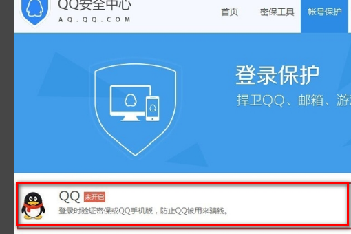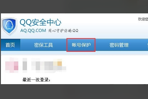2、在qq安全中心首页导航栏处,定位到”账号保护“并点击。