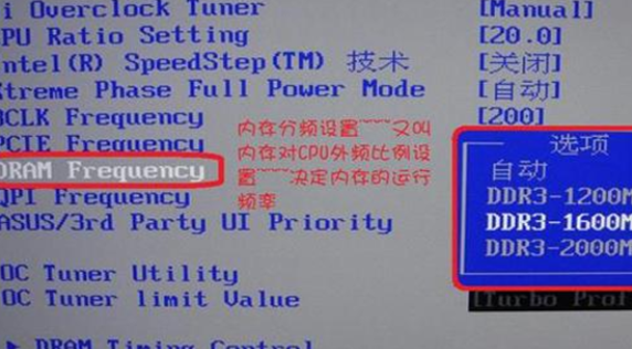 7、存储器比率设置(也称为存储器交叉设置)确定存储器操作频率,在超频CPU之前,选择最低频率以确保内存和内存控制器的稳定性。
