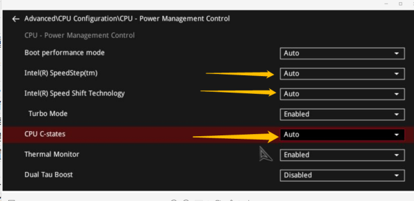 在BIOS设置菜单的CPUConfiguration---CPU-PowerManagementControl下,