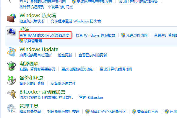 四、接着点击“查看RAM的大小和知处理器速度”。