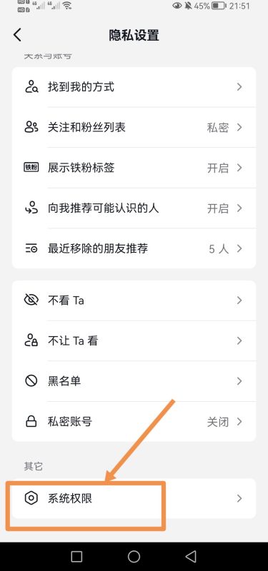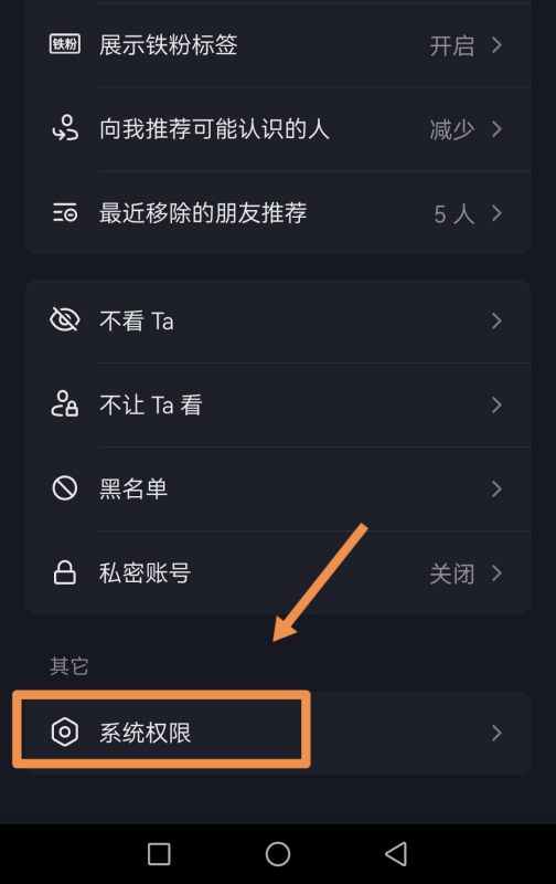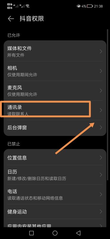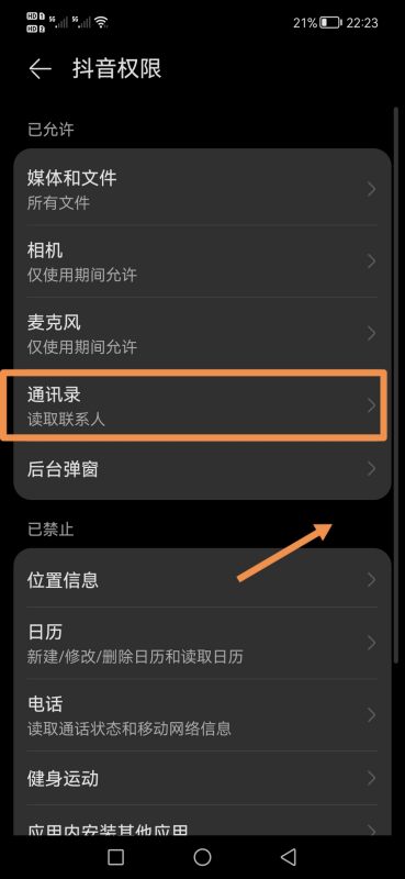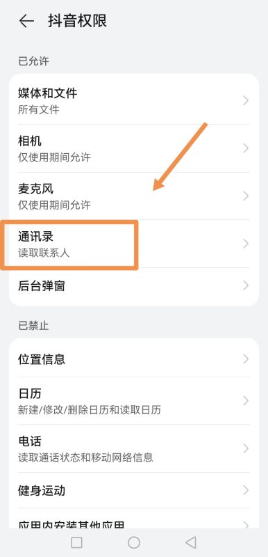 8.在抖音权限里,选择【通讯录】: