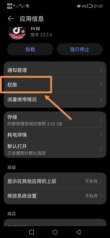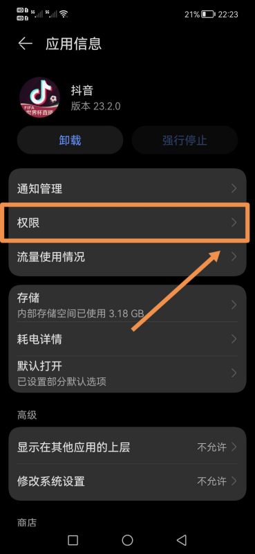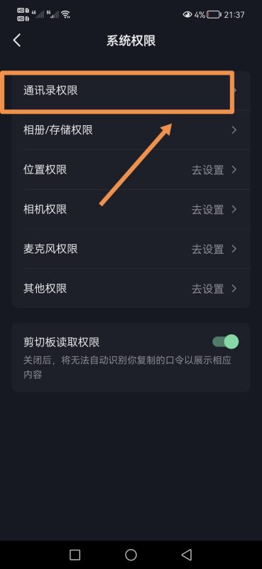 5.进入系统权限后,选择【通讯录权限】:
