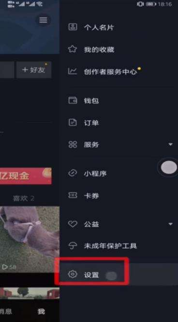 2.在下方菜单栏中选择【设置】: