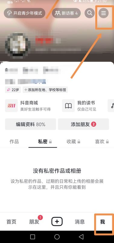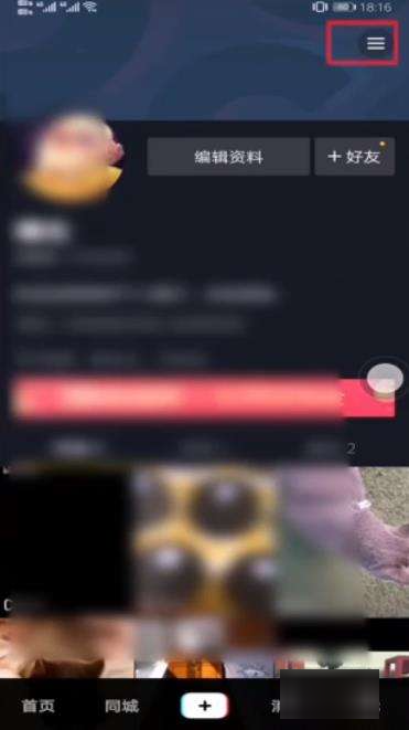 1.打开抖音我的个人页面,选择右上角【三】: