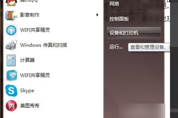 2、首先我们打开电脑,在电脑桌面点击左下角系统图标,打开电脑的“设备和打印机”。