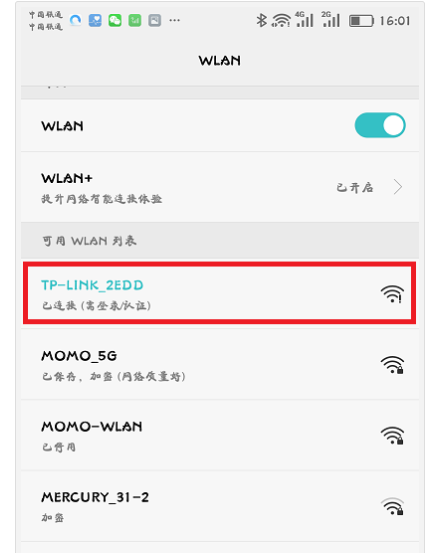 把路由器的WAN接口连接好了之后,需要让手机连接到这台路由器的wifi信号,如下图所示。