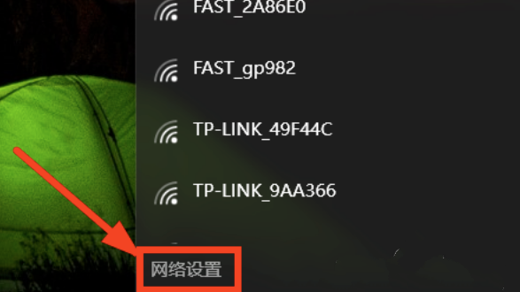 2、要用新的无线WiFi密码进行连接,我们首先要忘记原来的无线网络。点击任务栏网络图标,然后点击这里的网络设置按钮,如图所示,在最下面这个位置。