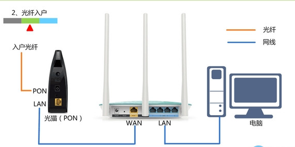1、猫/光猫中接出来的网线,插在tplink路由器的WAN口;如果你家宽带没有用到猫,需要把入户的宽带网线,插在tplink路由器的WAN口。