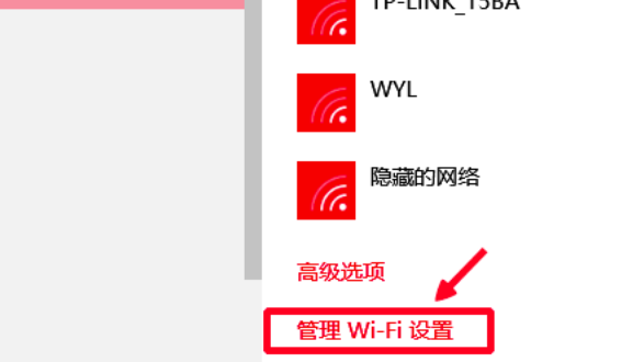 3、这时候出现的窗口中,我们找到管理Wi-Fi设置选项打开进入,如图所示。
