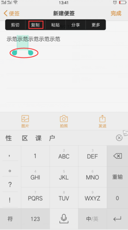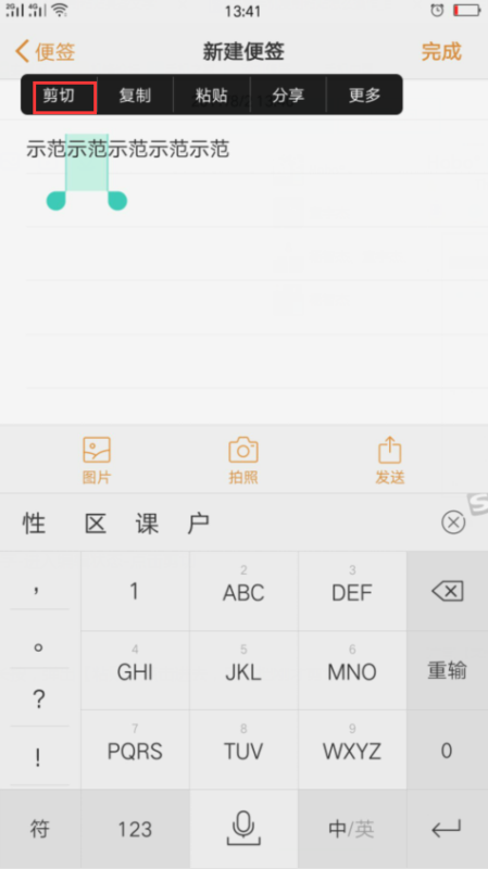 1、打开要剪切的内容-长按文字-进入编辑状态-点击剪切(旁边那两个小点可以控制调节所需剪切文字范围)