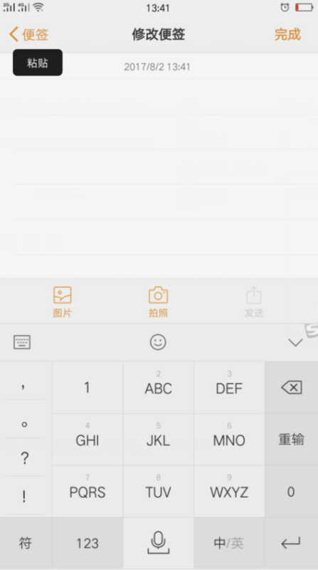 2、打开想要粘贴的空白处,长按,弹出【粘贴】点击进去,即可把刚才剪切的内容粘贴进去了。