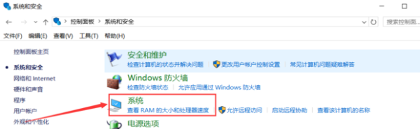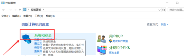 2、打开系统与安全选项,里面可以设置与内存相关的设置。
