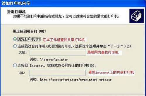 4、弹出网络打印机的查找方式。