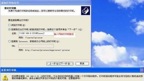 5、输入网络打印机路径后点下一步,会弹出安装打印机提示。