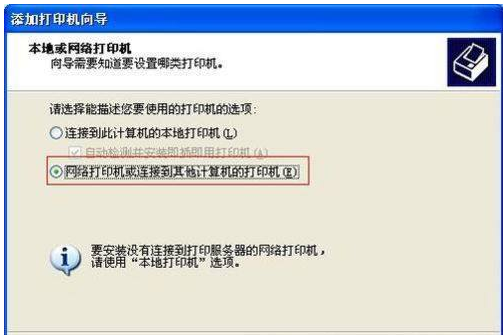 3、提示要安装的打印机选项,选择网络打印机后点下一步。