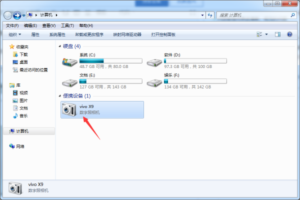 7、最后就能成功将vivo手机通过数据线连接到电脑了。
