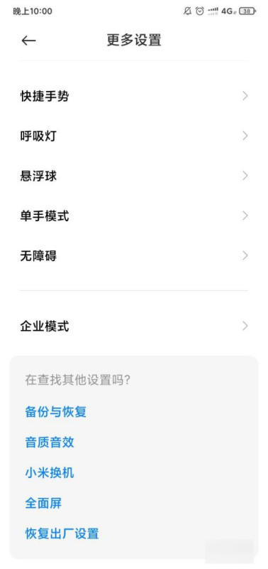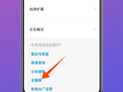 点击小米换机下面、恢复出厂设置上面的全面屏。