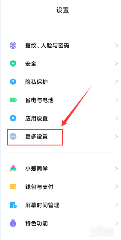 1、打开进入小米手机系统设置,在设置中找到更多设置并点击。