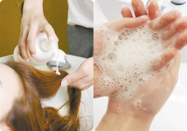 揉洗:用指腹像梳子那样按摩头皮、弄出丰富的泡沫,时间至少1分钟,但不超过5分钟。