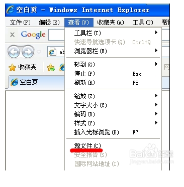 第二种方法就是根据浏览器状态栏或工具栏中的点击 “查看”然后就用一项“查看源代码”,点击查看源代码即可查看此网页的源代码源文件。
