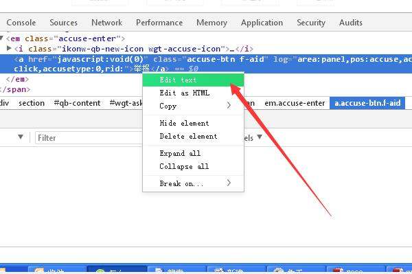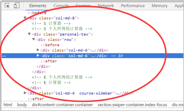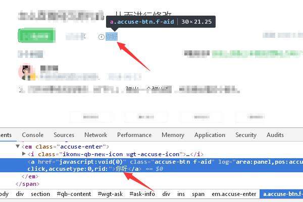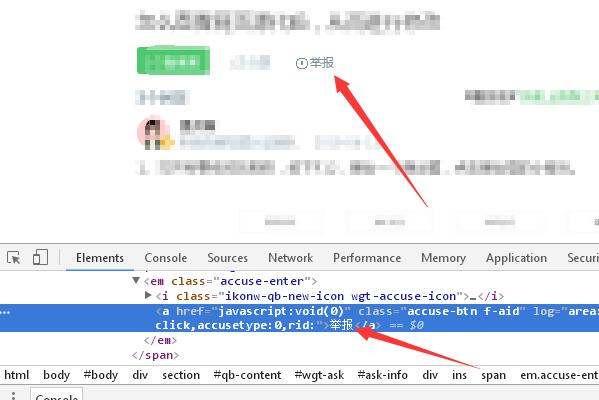 3、点击后在页面的下方会打开一个网页元素代码窗口。
