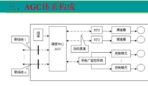 自动发电控制(Automatic Gain Control)简称AGC,它是能量管理系统(EMS)的重要组成部分。按电网调度中心的控制目标将指令发送给有关发电厂或机组,通过电厂或机组的自动控制调节装置,实现对发电机功率的自动控制。
