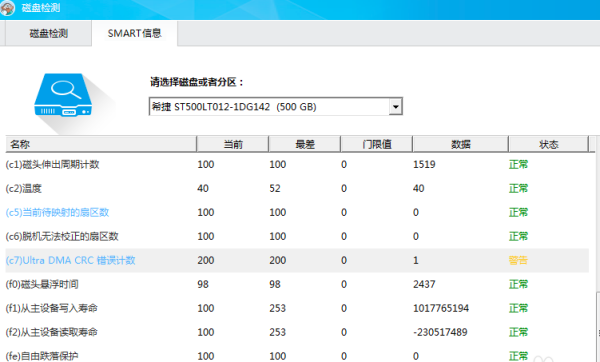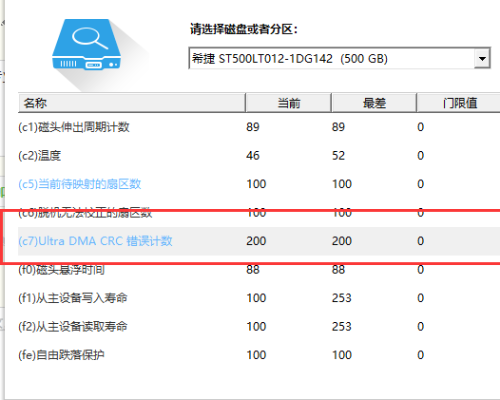 硬盘c7计数错误:标准解释为Ultra DMA CRC 错误计数警告。