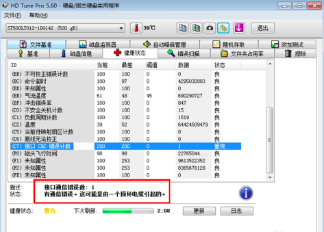 笔记本硬盘问题,显示(c7) ultra dma crc错误计数,求助