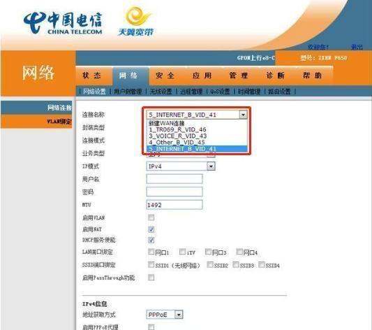 3.在“连接名称”下拉选项中,选择“INTERNET_B_VID_41”