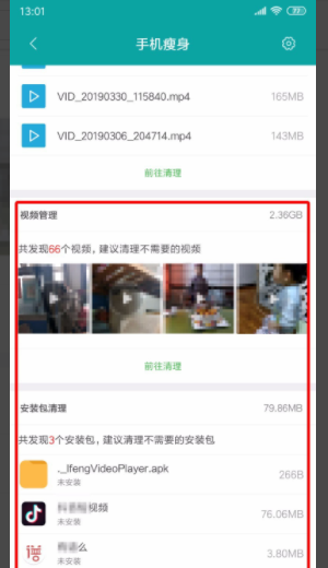7、最后还有一些【视频管理】和【安装包清理】,把这些也都清理一下,这样手机就干净多啦。