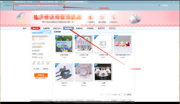 2. 接下来我们需要在浏览器上打开我们需要店铺点击旺铺相册,接下来我们复制网址.