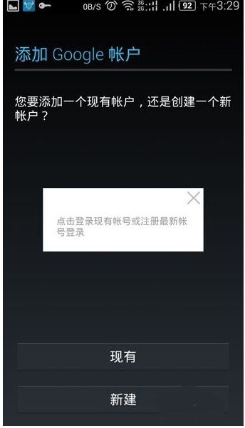 5、问题全部解决后,会弹出如下界面,点击“马上登录”。会要求你登录Google帐户;如果你以前注册过Google帐户,选择“现有”;如果以前没有Google帐户,选择“新建”,注册一个帐户。