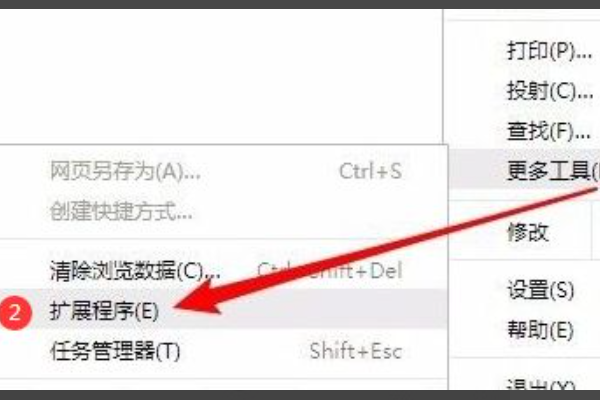 在出现的下拉菜单中,点击“更多工具”选项,在弹出的菜单栏里选择“扩展程序”选项。