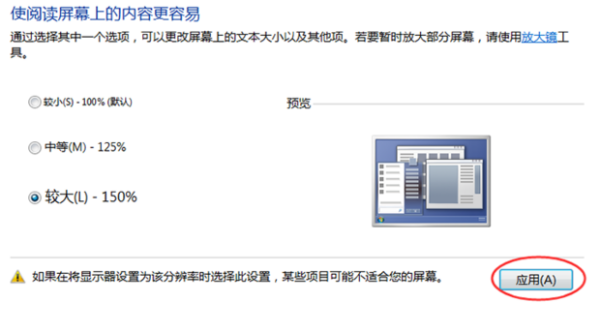 4、然后就可以看到更改文本大小的选项了,共有三种选择,可以按照自己的需求选择,选择好以后,点击【应用】。