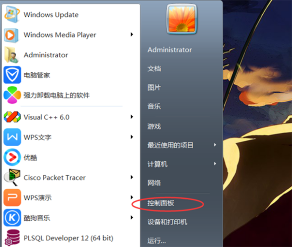1、点击电脑屏幕左下方的【开始】按钮,选择【控制面板】。