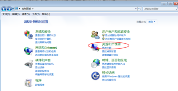 2、进入【控制面板】界面,选择【外观和个性化】。