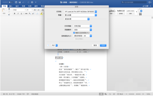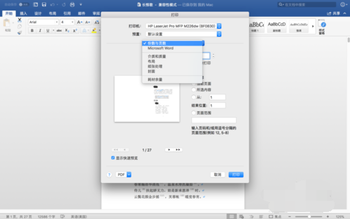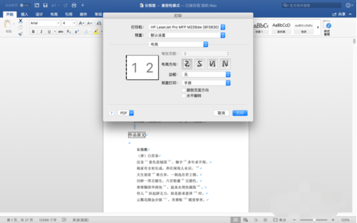 4、现在进入打印设置,注意使用的是自动双面打印机。点击“文件”--“打印”--“份数和页数”--“布局”。