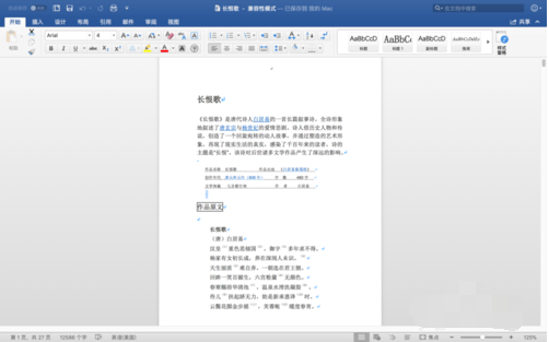 1、在word程序中打开需要编辑的文档,以个人收集的《长恨歌》为例。